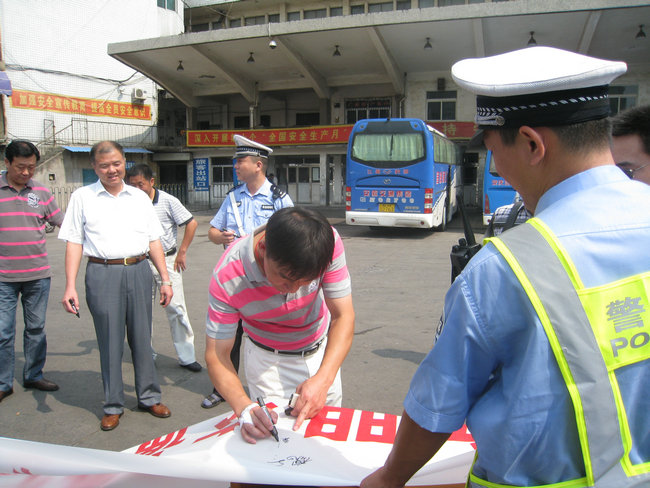 9月4日,市客運(yùn)分公司與交警支隊(duì)二大隊(duì)在安慶汽車(chē)站停車(chē)場(chǎng)內(nèi)開(kāi)展“文明交通我承諾,文明交通我參與”駕駛員簽名活動(dòng)。活動(dòng)首先由交警支隊(duì)二大隊(duì)二中隊(duì)楊指導(dǎo)員宣傳5種易發(fā)生道路交通事故的不良及違法駕駛行為,楊指要求駕駛員駕駛車(chē)輛做到:不超員、不超速、不疲勞駕駛、不酒后駕駛、不無(wú)證駕駛,做文明禮讓安全行車(chē)的文明駕駛員;隨后進(jìn)行了駕駛員簽名,市客運(yùn)分公司110名未當(dāng)班的駕駛員參加了本次簽名活動(dòng)。